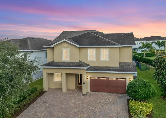 De 10-slaapkamer Newly Renovated 2026 - 11Br Large Home With Private Pool & Spa Near Disney Orlando ligt op ongeveer 3 km van het Windsor Hills Resort en nodigt gasten uit om te genieten van een zonneterras. De beschikbaarheid van een bubbelbad zorgt voor een ontspannend uitje in de wijk Celebration van Orlando.